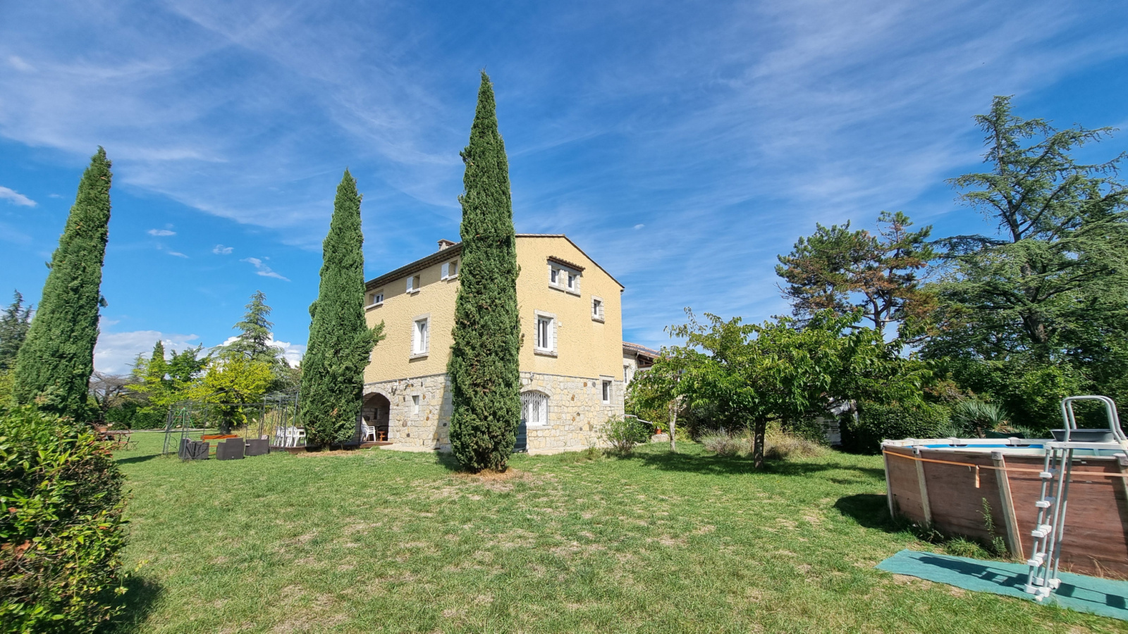 Le parc arboré et ensoleillé est doté d'une vue panoramique sur les massifs du Coiron et du Tanargue. Il propose deux piscines hors-sols, des espaces de jeux extérieurs, des terrasses ombragées sans aucun vis-à-vis ainsi qu’une dizaine de places de parking. Le tout à 30 minutes de MONTELIMAR et 20 minutes d'AUBENAS, proche de nombreuses activités touristiques au cœur d'un espace naturel riche et varié.
