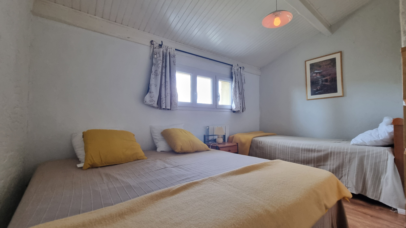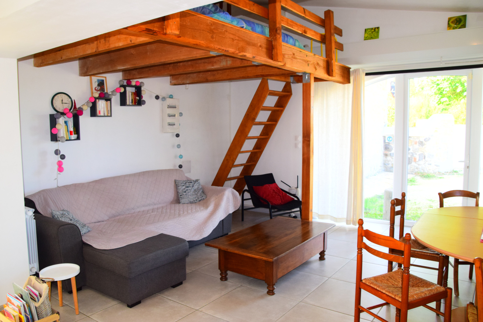 - Le deuxième gîte propose au rez-de-chaussée un vaste séjour qui s'ouvre sur une cuisine américaine tout équipée ; une salle de bain à l'italienne avec un WC séparé, un coin jeux, une petite bibliothèque, une mezzanine et une terrasse. Le premier étage se compose lui de deux chambres ainsi que d'un WC. Le tout sur une superficie habitable d'environ 75 m2.