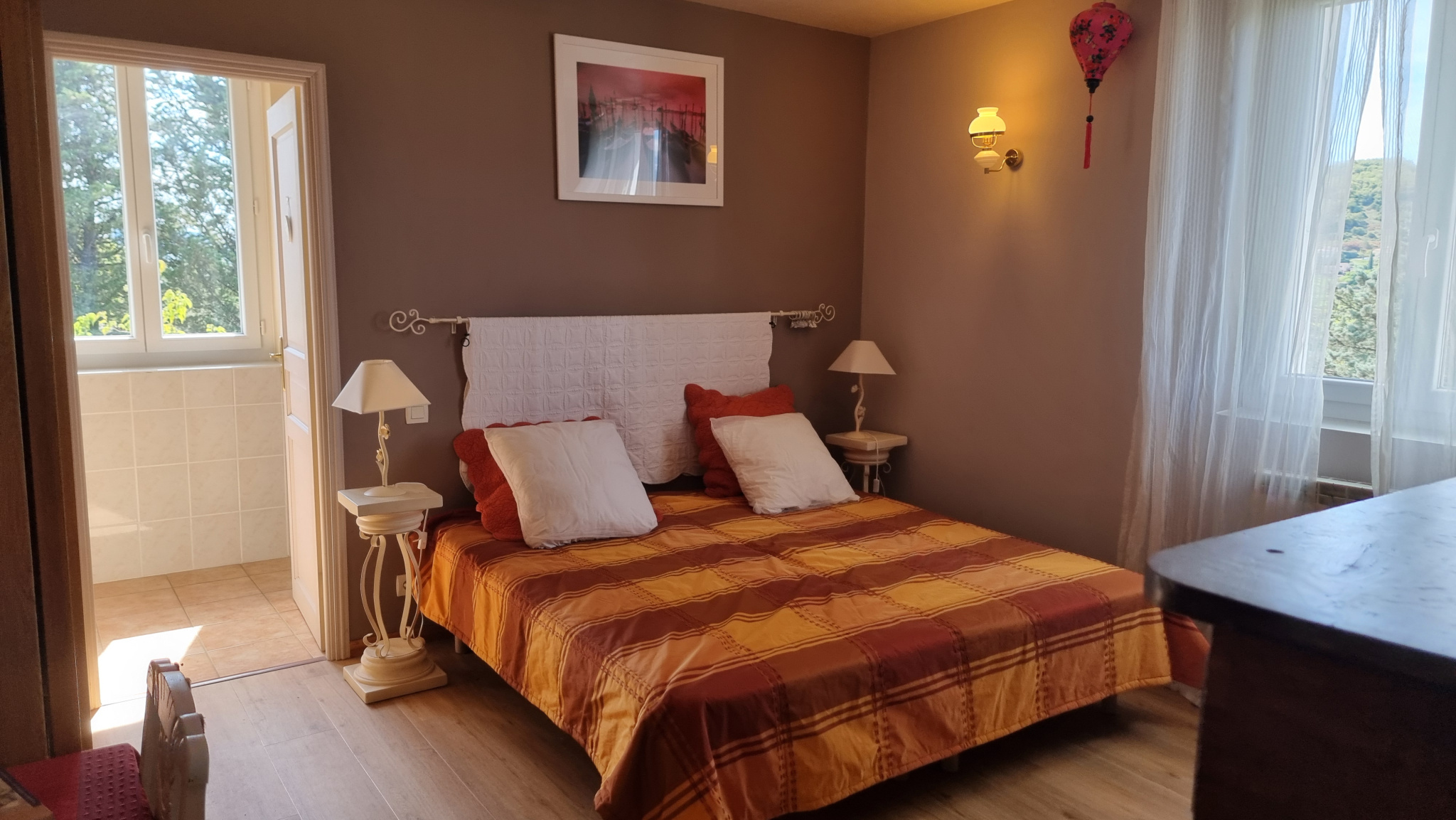 - Le premier gîte se compose au rez-de-chaussée d'un hall d'accueil avec un poêle à bois, d'une salle d'eau avec WC, d'un grand salon avec un poêle à bois également, d'une cuisine équipée, d'une belle suite parentale avec salle d'eau et WC, ainsi que d'une terrasse ombragée au calme. A l'étage on retrouve 2 chambres avec chacune sa salle d'eau WC, ainsi qu'un coin bibliothèque pour se détendre. Au 3e niveau on retrouve un grand salon, deux chambres, une salle d'eau avec WC ainsi qu'un espace commun de travail. Le tout sur une superficie habitable de plus de 250 m2 !