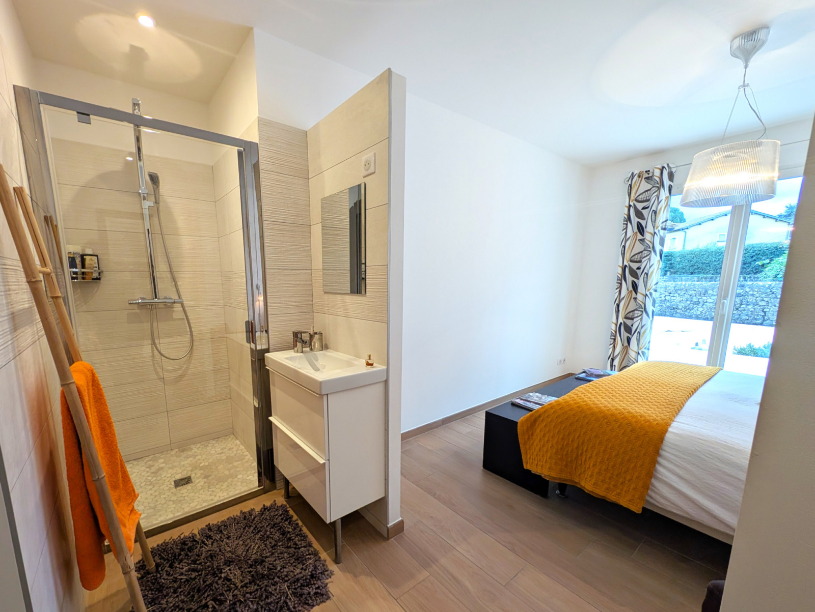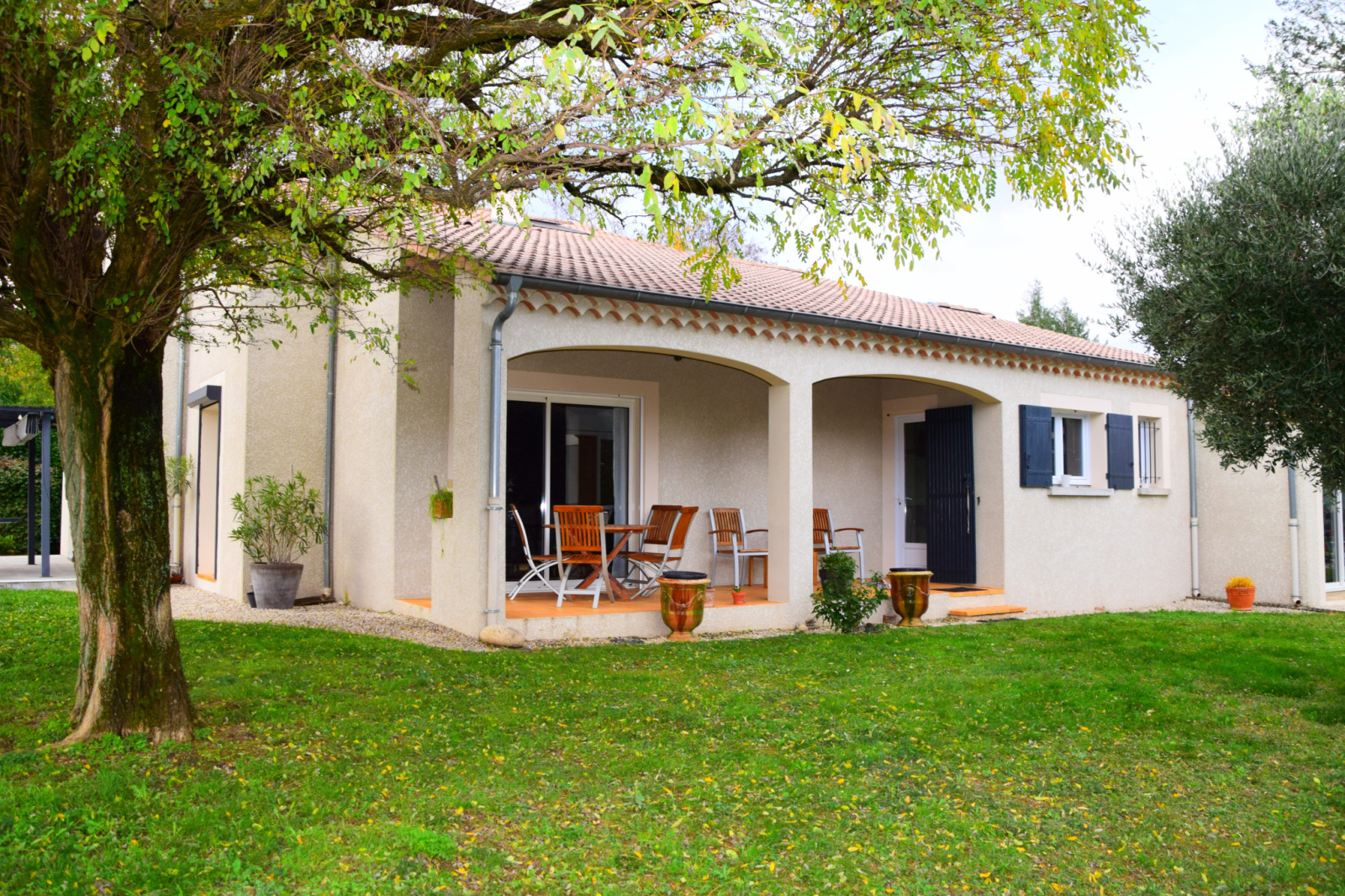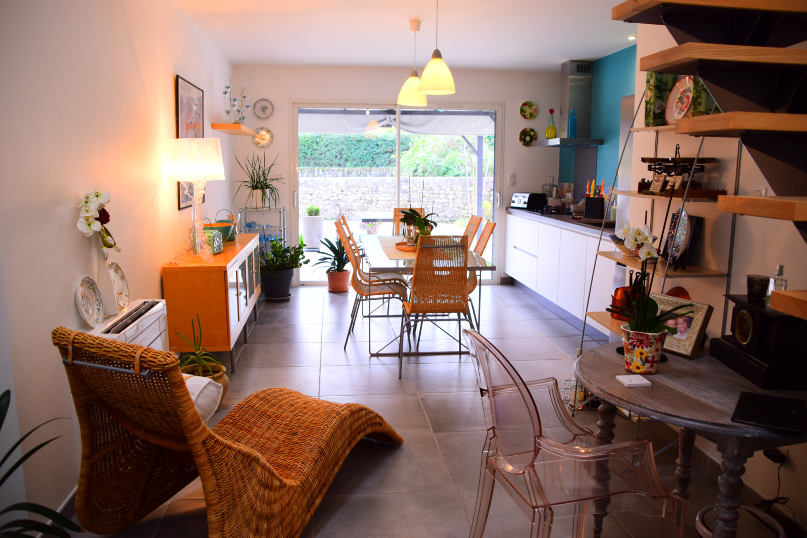 Les espaces sont aérés, agencés avec beaucoup de goût et de clarté. La maison est très fonctionnelle et offre un plain-pied très chaleureux, lumineux et ouvert sur l’extérieur.