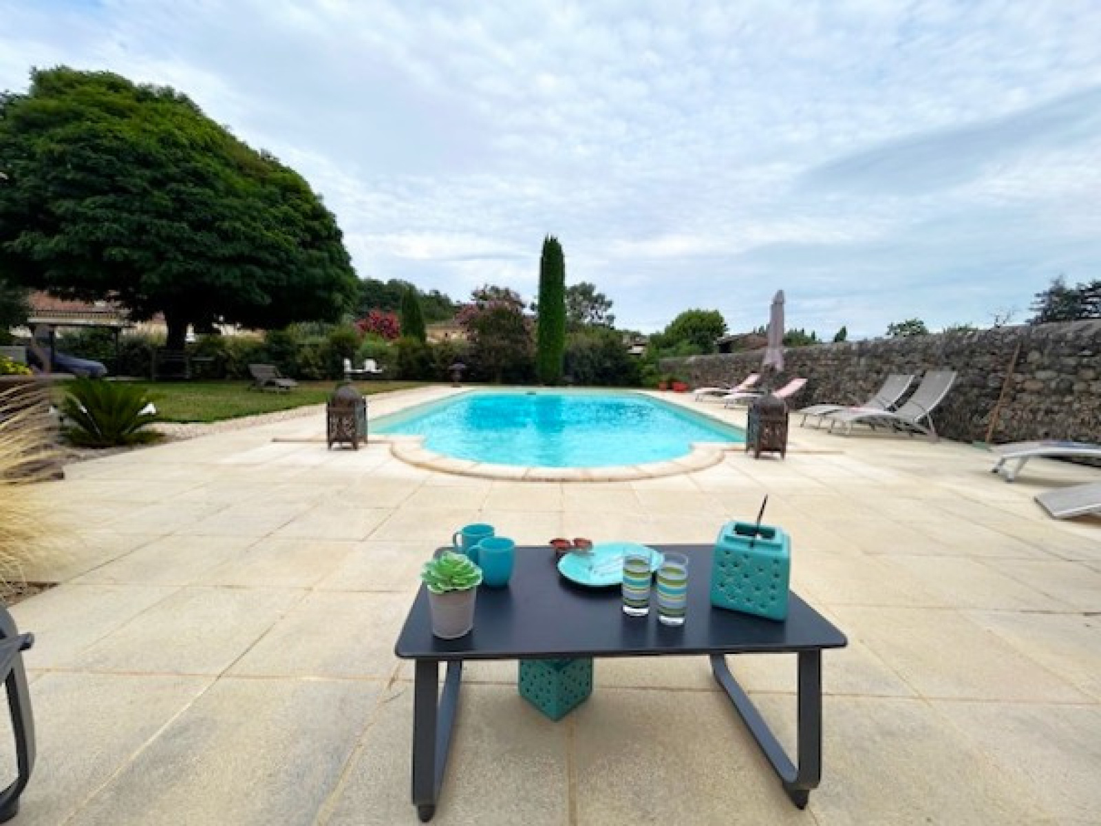 La villa propose également une superbe pergola orientée plein Sud et surplombant cette belle piscine, ainsi qu’une petite terrasse côté Est pour prendre son café le matin au lever du soleil.