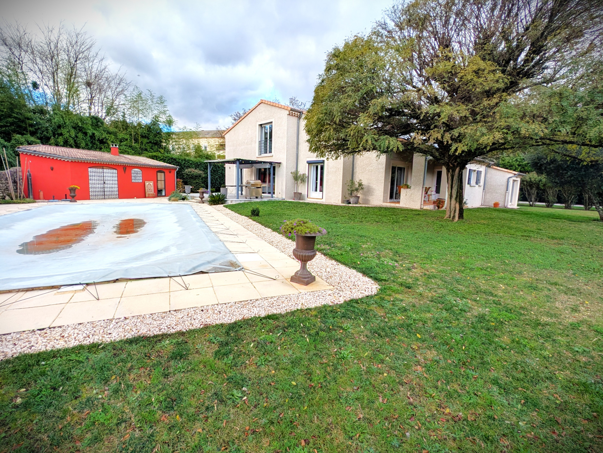 Une piscine creusée de 11 par 5.5 mètres prône dans le jardin arboré, et offre une magnifique vue sur le château d’Aubenas. Un pool House équipé d’un four à pizza et d’un local technique pour la piscine vous permettra de profiter tout l’été du coin baignade et de ses abords.